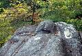 寝釈迦の周囲は断崖で小さな石仏が見守るかのように数体祀られていますが、撮ろうとして足を滑らせると沢へ滑落します、全体像を撮るのに苦労した。
